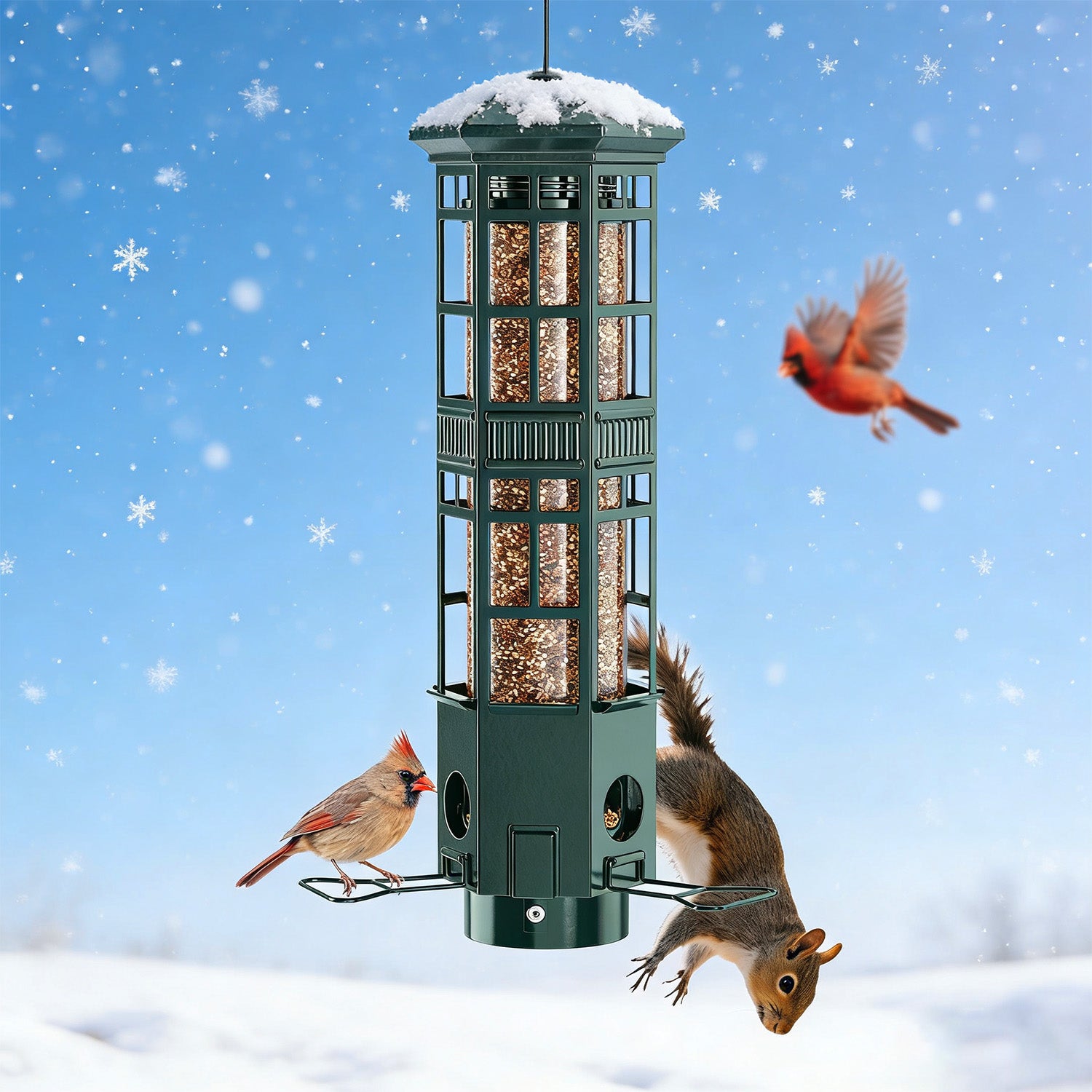VINGUYS incorporates a warning sound deterrent feature designed to discourage squirrels and minimize their access to bird food. While this feature can effectively reduce squirrel disturbances, it’s important to understand that no bird feeder can be completely squirrel-proof — particularly when faced with especially determined squirrels. For the best results, we recommend placing your V-feeder in an open, elevated location where squirrels are less likely to reach it easily.