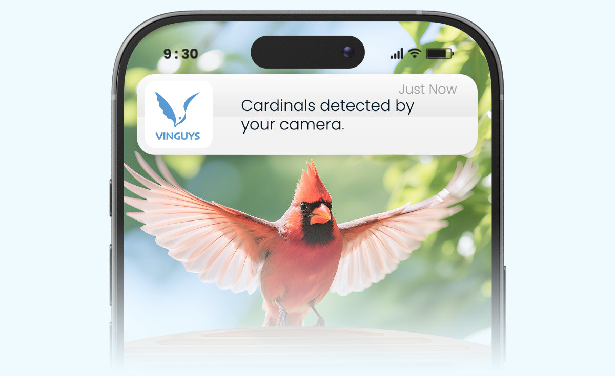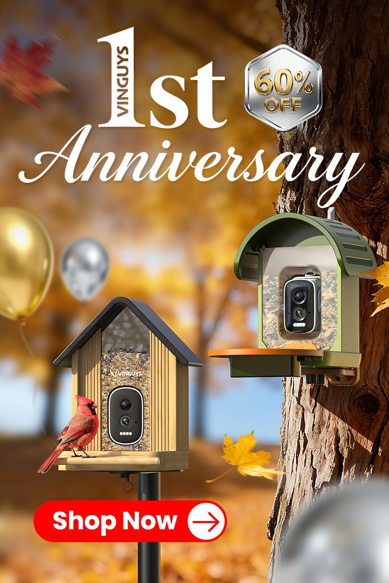 • VINGUYS incorporates a warning sound deterrent feature designed to discourage squirrels and minimize their access to bird food. While this feature can effectively reduce squirrel disturbances, it’s important to understand that no bird feeder can be completely squirrel-proof — particularly when faced with especially determined squirrels. For the best results, we recommend placing your V-feeder in an open, elevated location where squirrels are less likely to reach it easily.