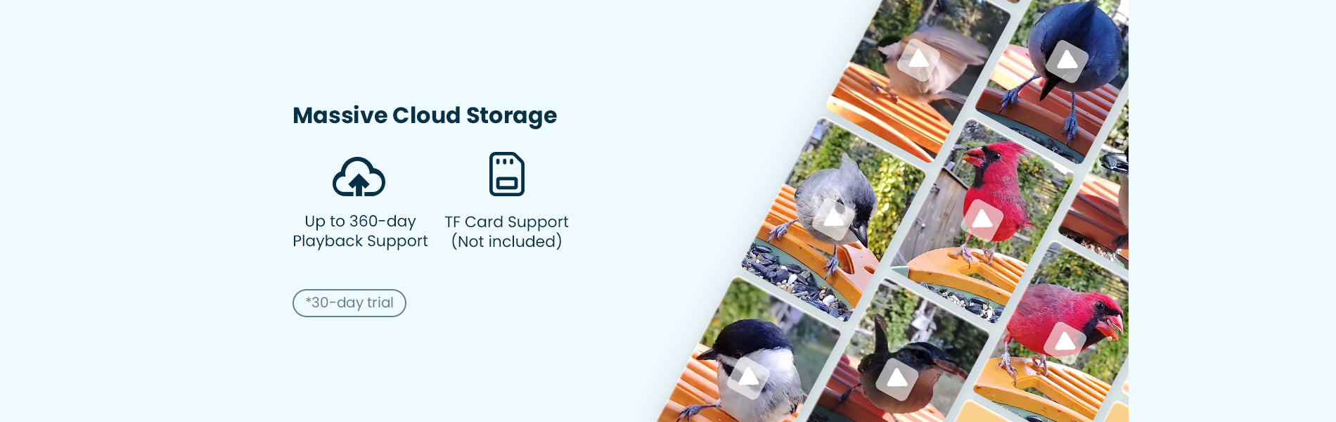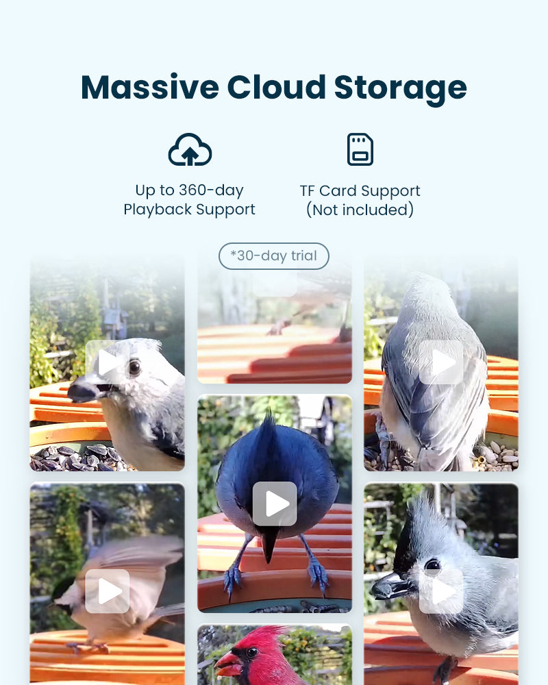 • Share with Unlimited Users: Enjoy birding with friends through cloud storage, TF card support, and instant social sharing.