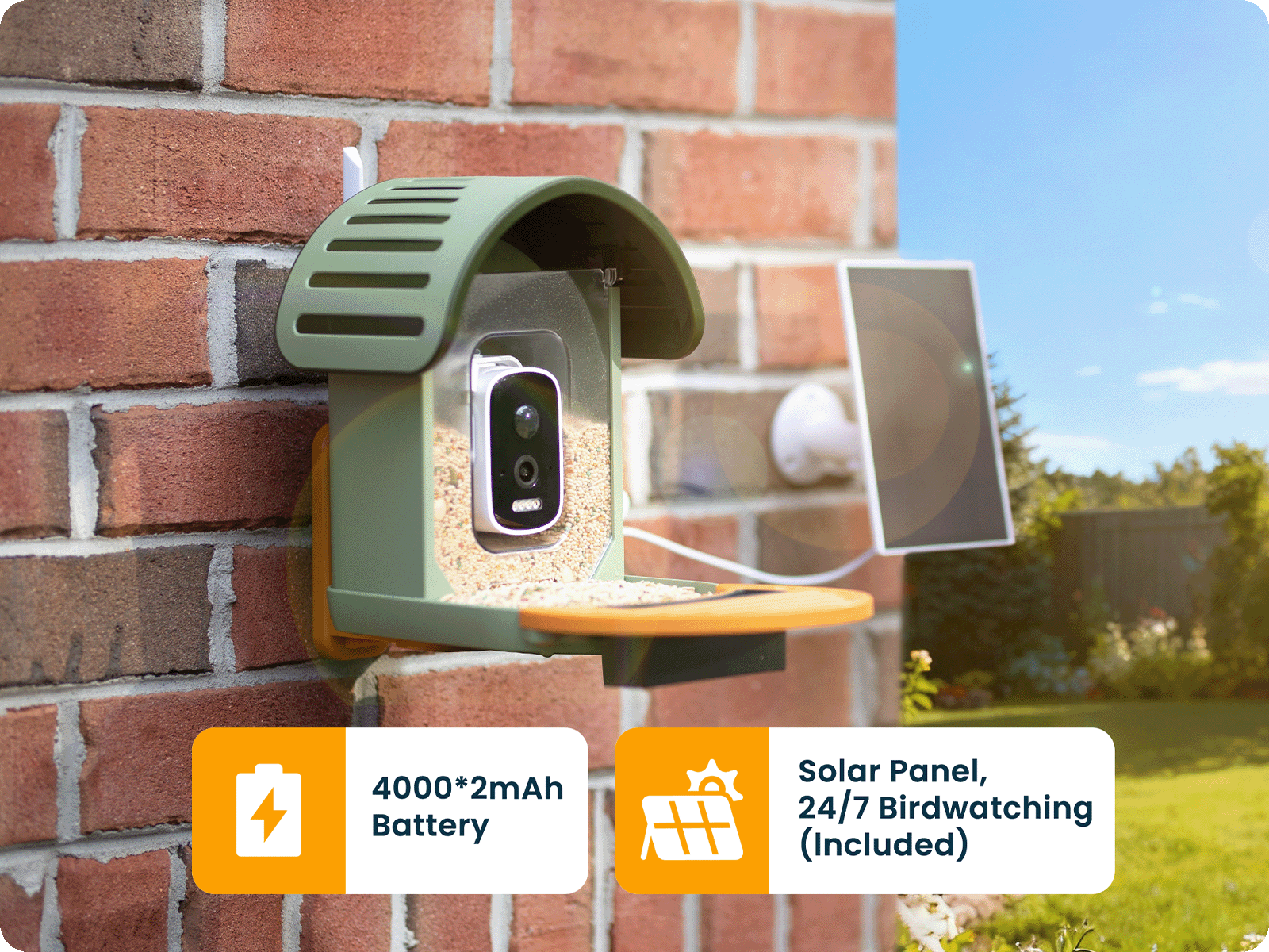 Designed for 24/7 performance, The 4000mAh*2 battery lasts up to 3 months on one charge. Combine with solar charging for a self-sustaining setup—so your birdwatching never stops.
