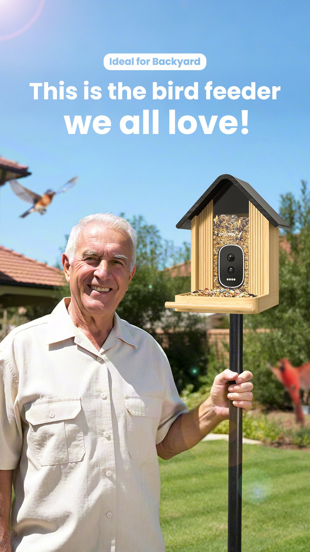 - Weatherproof & Spacious: IP66-rated for all-weather durability with a 1.5L seed capacity and solar-powered convenience.