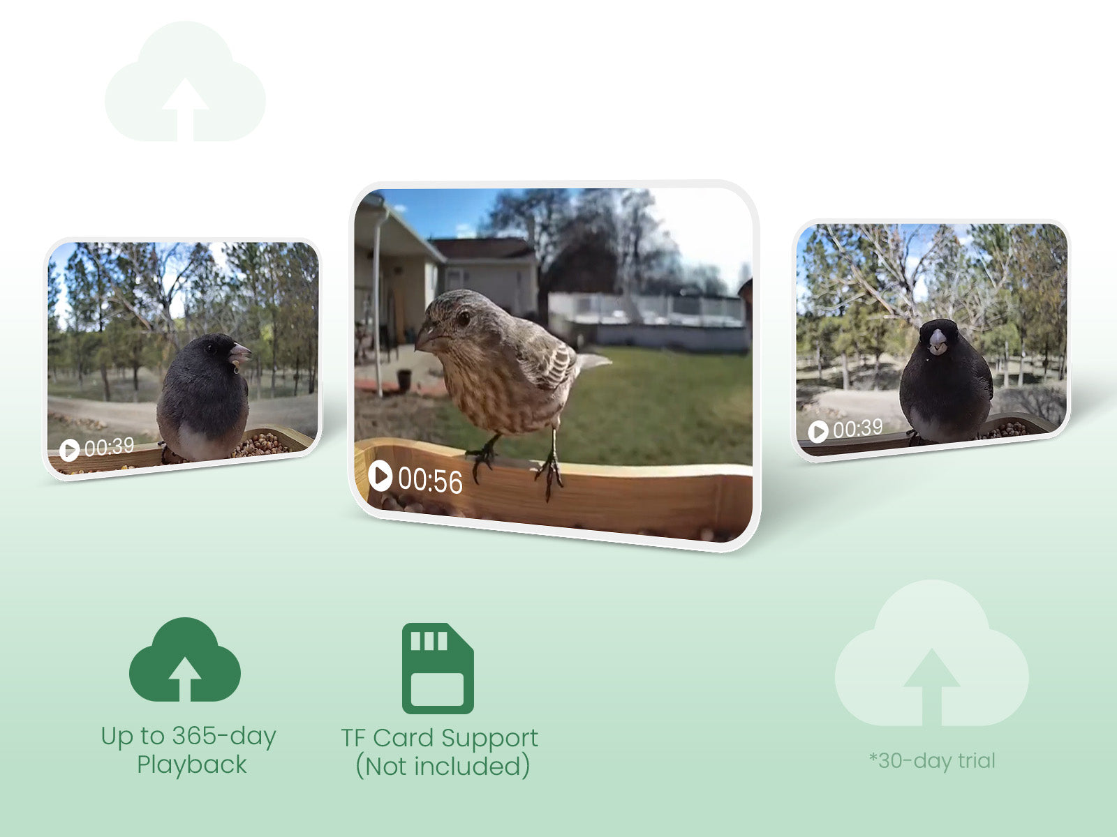 - 2.5K UHD Camera: Crystal-clear photos and videos, with color night vision for 24/7 birdwatching.